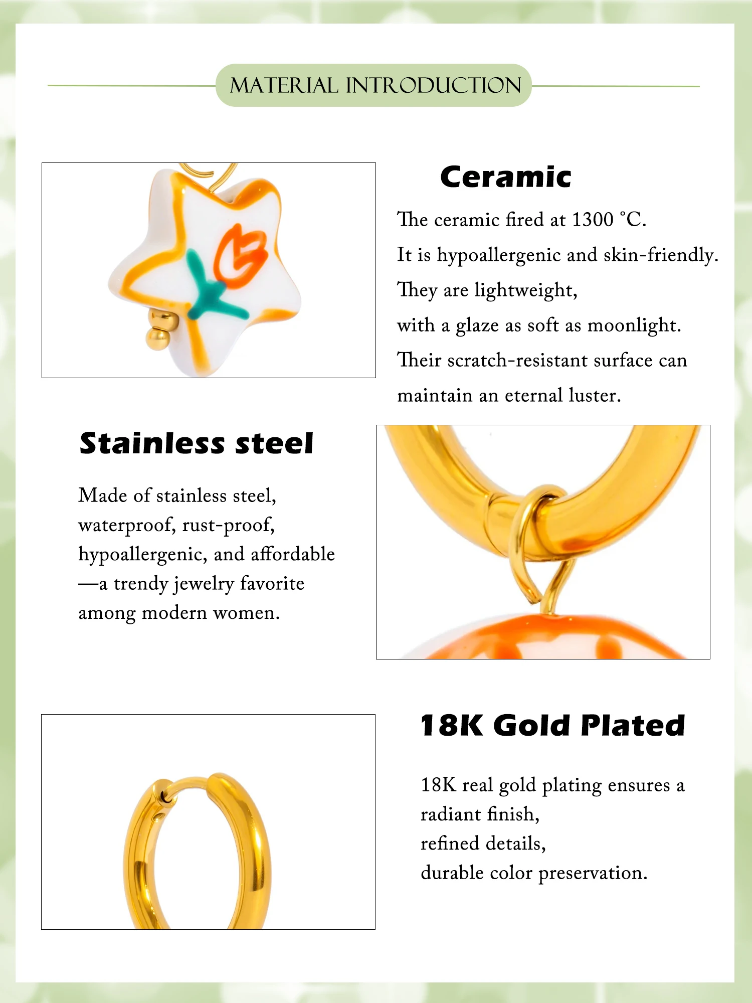 Detachable 18K Gold Plated Stainless steel Hoops, Hypoallergenic Earrings